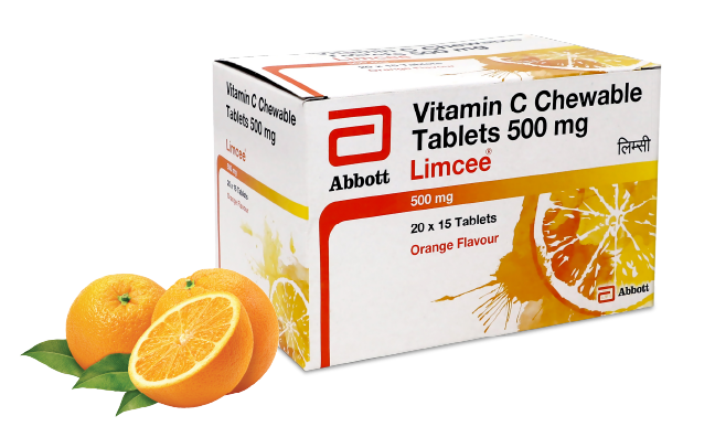 Limcee contains Vitamin C, which helps treat Vitamin C deficiency. Limcee may be particularly helpful when your nutritional needs increase, such as during periods of illness, stress, or recovery, as advised by your Physician. By supporting your body’s immune function, Limcee helps provide your body with the support it needs to maintain optimal health and well-being.1,2
